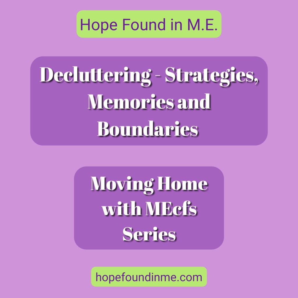 Decluttering tip: set a timer, have a (non-alcoholic) drink handy. Tempting though it might be. And don’t start decluttering when you’re tired or hungry. Bit of a dilema with MEcfs, I simply decide if I can risk it at a particular moment in time. Which in an ideal world would be never.